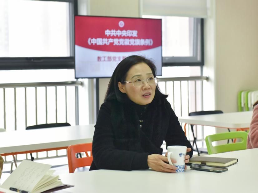 接机关党委要求,12月19日下午,围绕《中国共产党党徽党旗条例》,教工部党支部在综合楼430开展专题学习,校党委副书记杨爱华参加支部学习。集体学习由教工部副部长李箐主持。