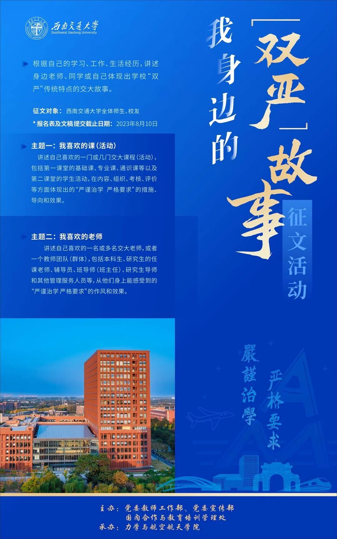 在一百二十余载办学历程中,我校形成了“严谨治学、严格要求”的“双严”传统。这一传统代代相传,影响了无数交大学子,更有许多关于“双严”的故事传为佳话。为传承和发扬学校“双严”传统,特面向全校师生、校友开展了征文活动。现陆续发布优秀征文。
